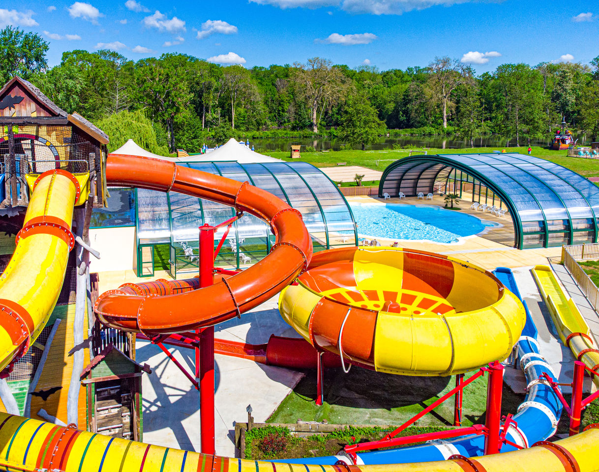 De camping beschikt over een waterpark met een verwarmd buitenzwembad (mei-september), een overdekt verwarmd zwembad (april tot oktober), 2 glijbanen, de Spacebowl en een peuterbad.