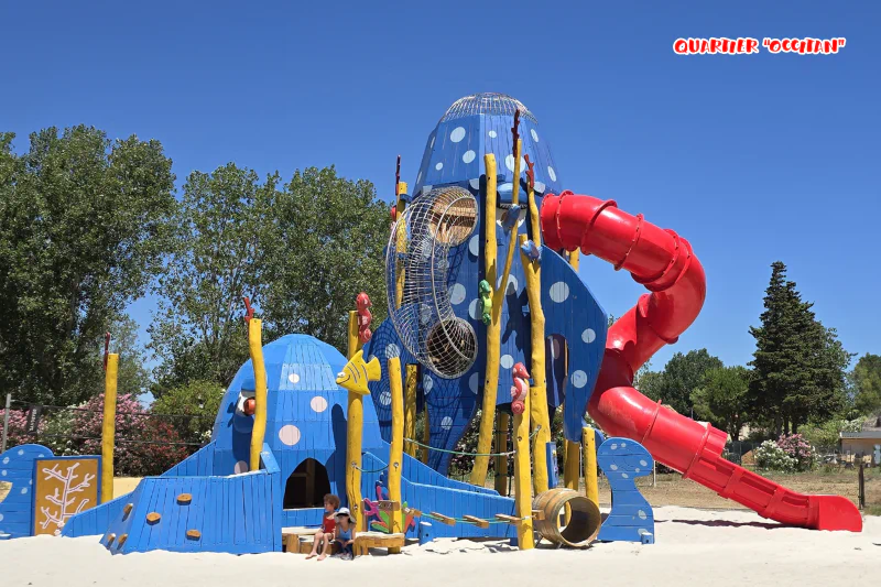 Leuk familiepark in zuid-Frankrijk, op 300m van het strand, en op 100m van het centrum met winkels en restaurants.