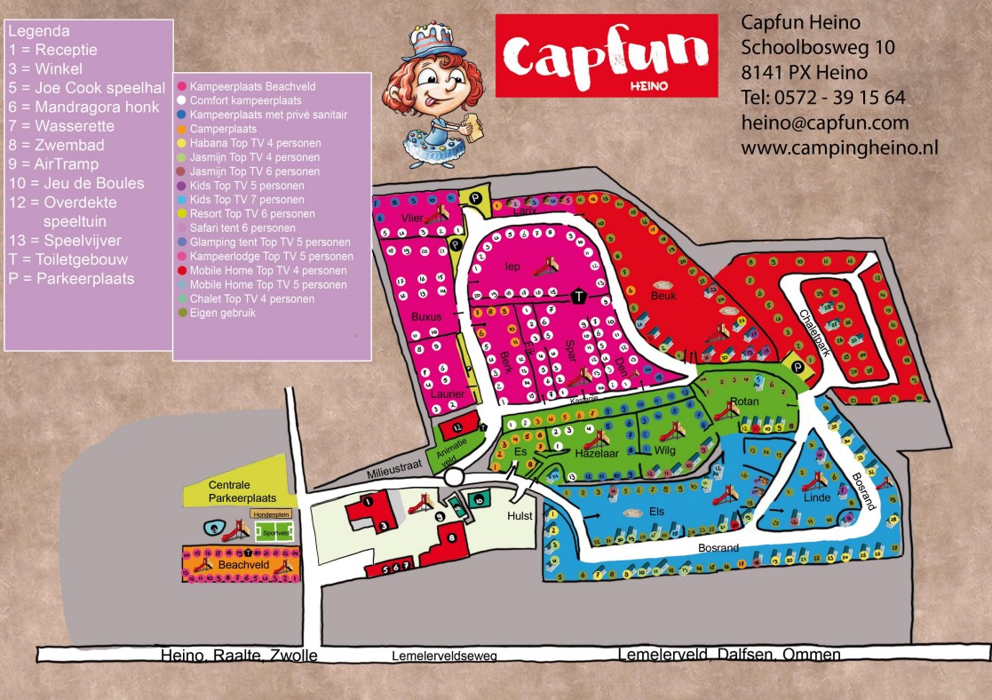 Capfun Heino ligt in het groene Overijssel, vlak bij de gezellige stad Zwolle. Op dit familiepark verblijf je in comfortabele accommodaties of op ruime kampeerplaatsen midden in de natuur.
