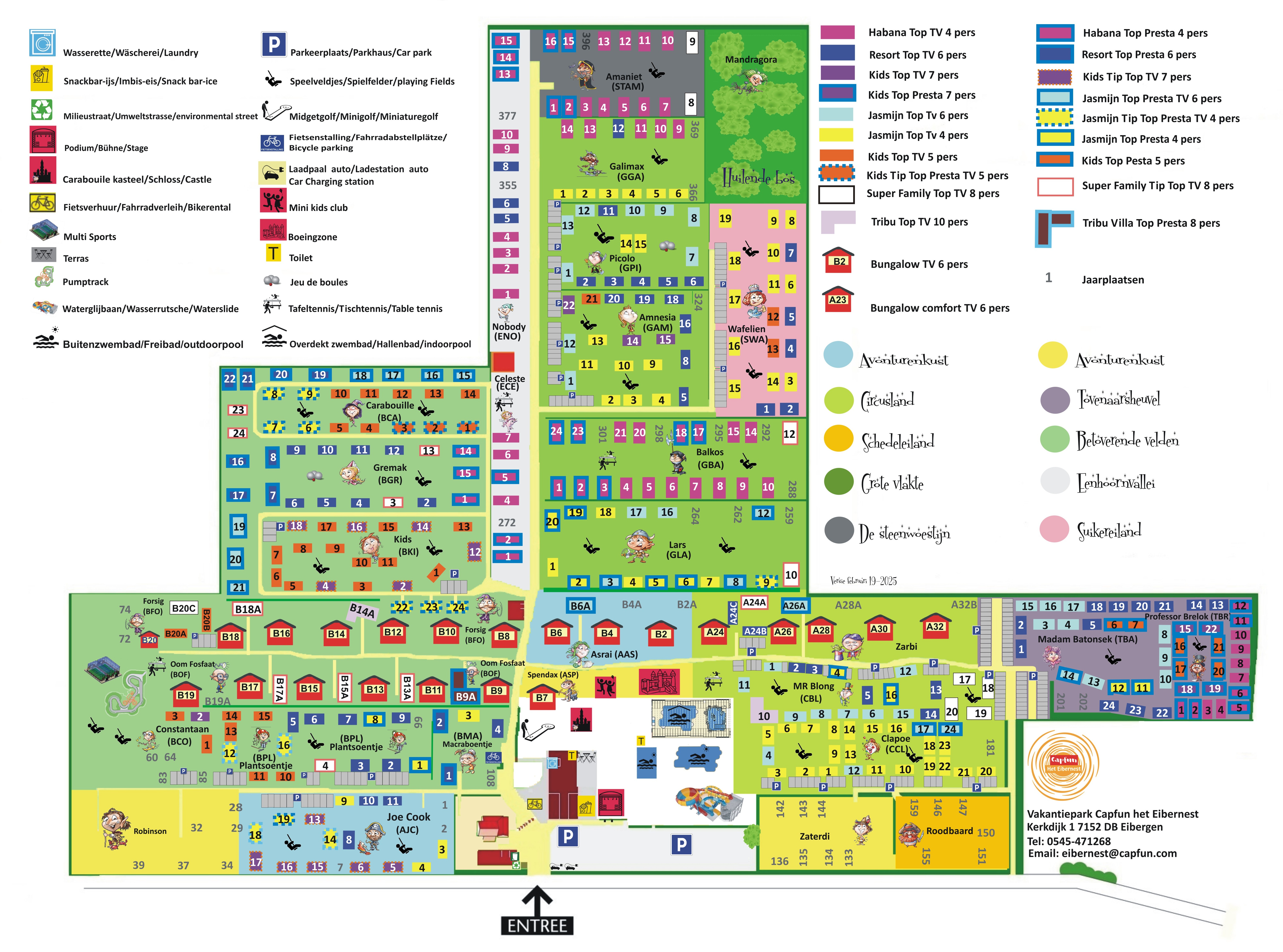 Vakantiepark Eibernest ligt tussen Eibergen en Groenlo. Het park heeft een rustige, landelijke ligging tussen de bomen. Een super magische speeltuin met het kasteel van carabouille en wat dacht je van onze nieuwe pumptrackbaan. Het is een geweldige plek voor een familievakantie. Daarnaast kun je heerlijk komen zwemmen in het nieuwe overdekte zwembad en peuterbad.