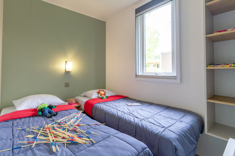 - 2 slaapkamers met 2 eenpersoonsbedden of stapelbedden