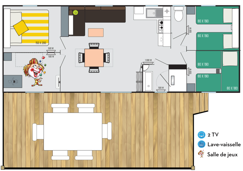 Het huis ligt bij de ingang van de camping en geeft u toegang tot alle faciliteiten en animaties van de camping!