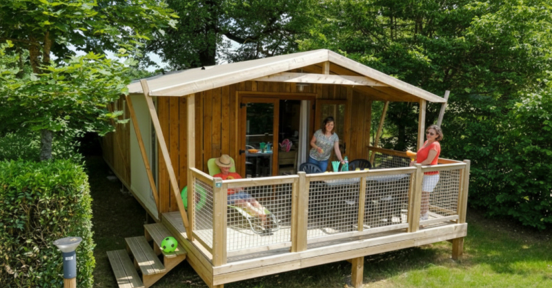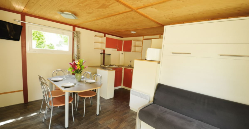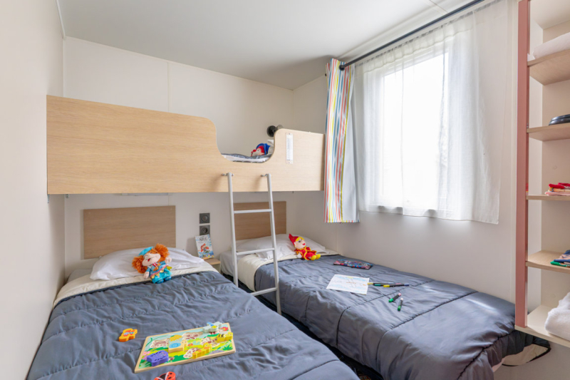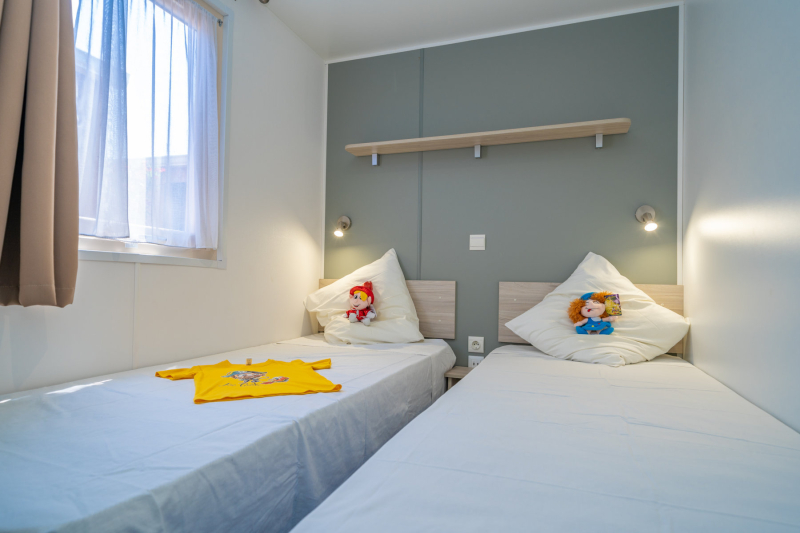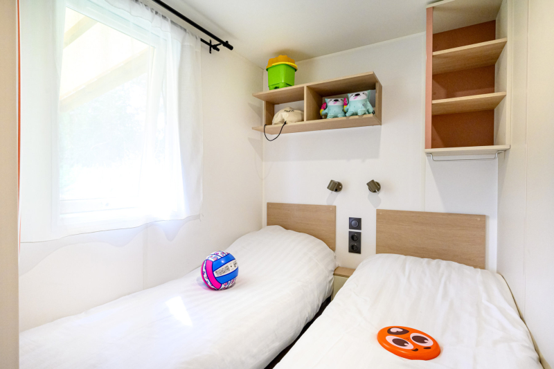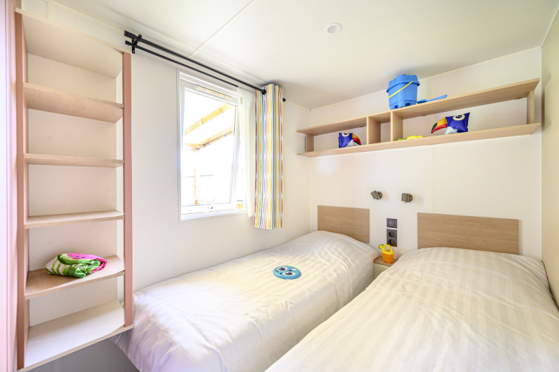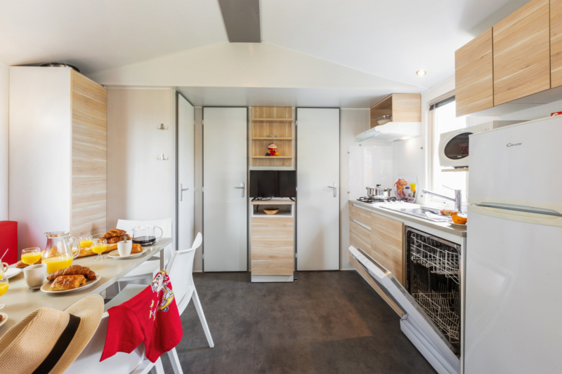 Deze stacaravan bevindt zich in een voetgangerszone – afhankelijk van beschikbaarheid. Voertuigen worden geparkeerd bij de ingang van de zone, waardoor een volledig voetgangersgebied voor het hele gezin gegarandeerd is.