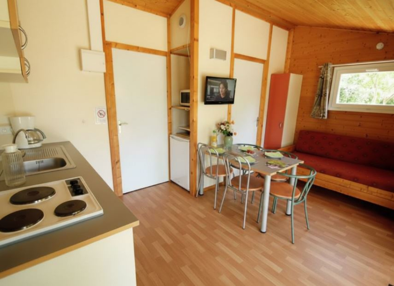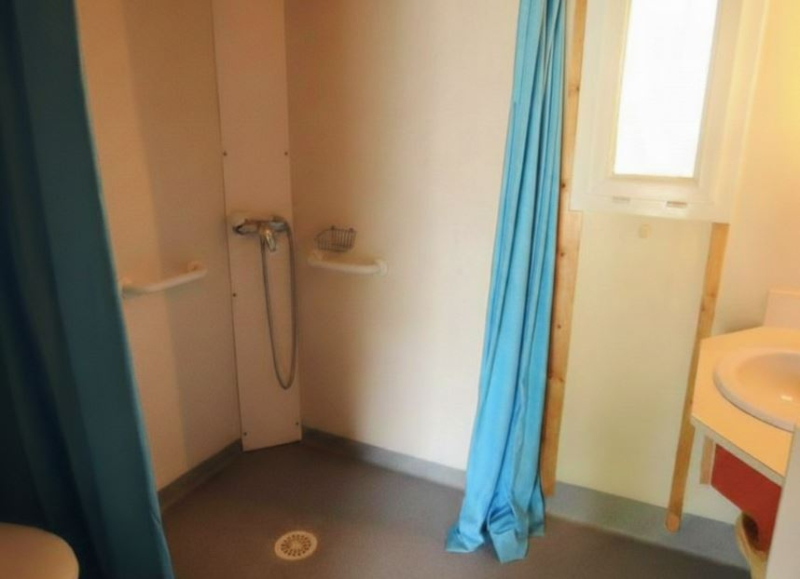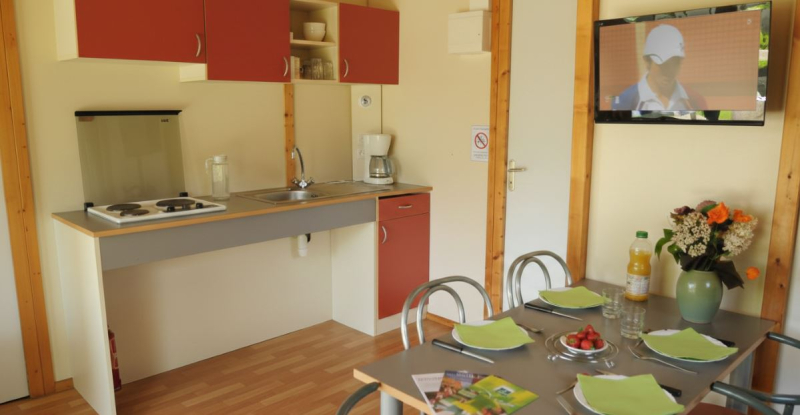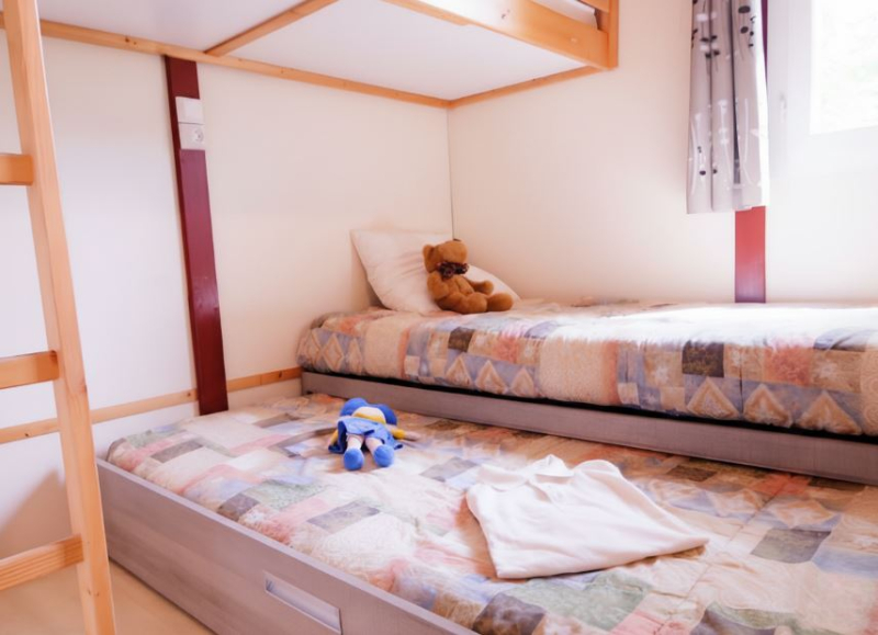 - 1 slaapkamer met 3 slaapplekken (1 verhoogd eenpersoonsbed en een uitschuifbed met twee slaapplaatsen)