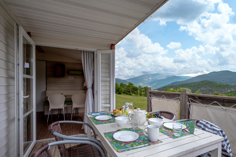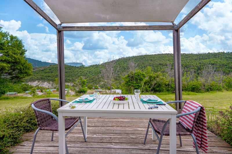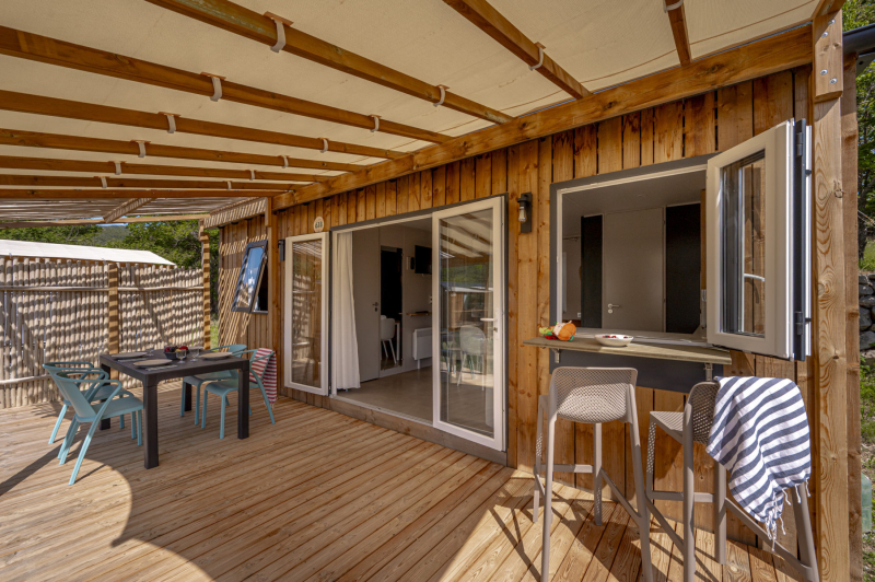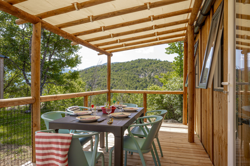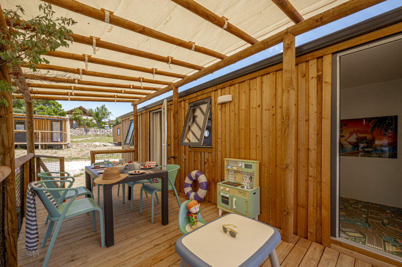 Ingerichte bungalowtent : Tente Lodge 5 personen