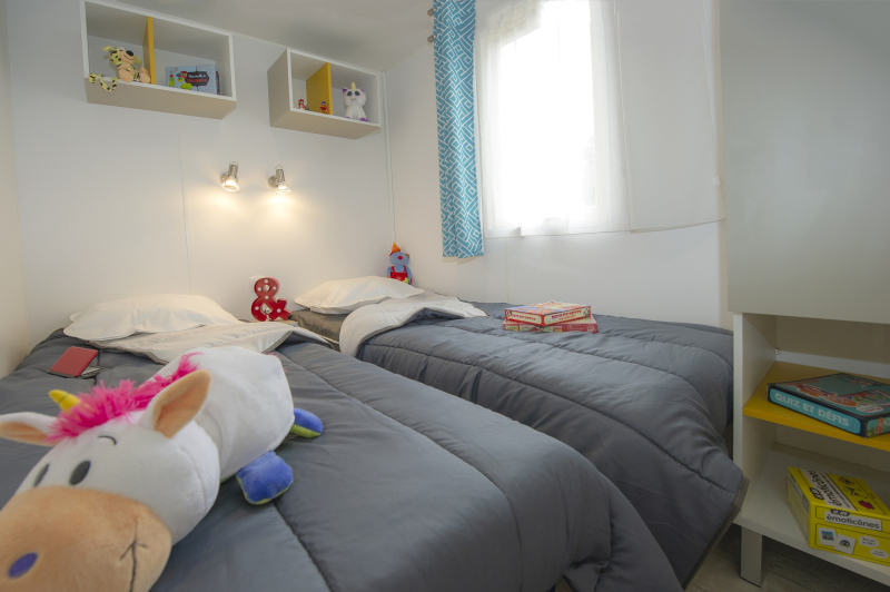 - 1 slaapkamer met 1 eenpersoonsbed en 1 stapelbed (2 slaapplaatsen voor kinderen tot 12 jaar)