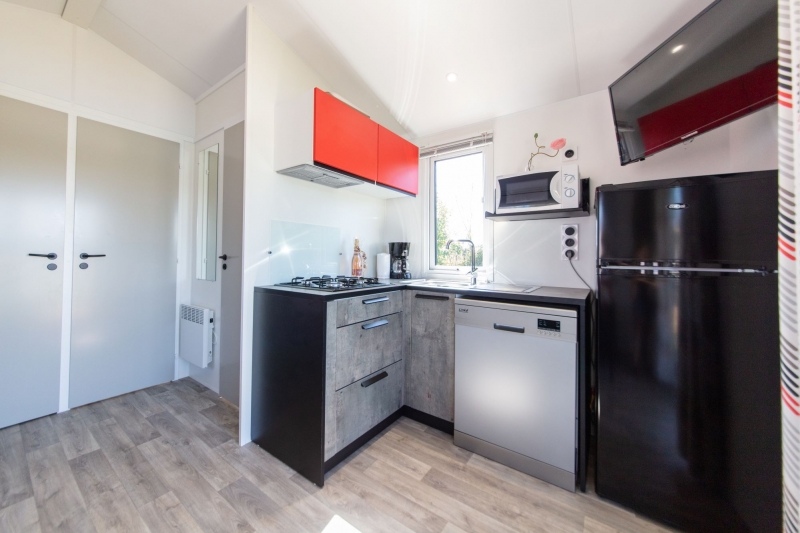 In de Lodge staat een tweepersoonsbed en een apart stapelbed voor de kinderen. Ook is er een volledig uitgeruste kitchenette en een infrarood sauna!