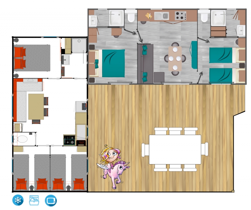 De tweede stacaravan bestaat uit:
