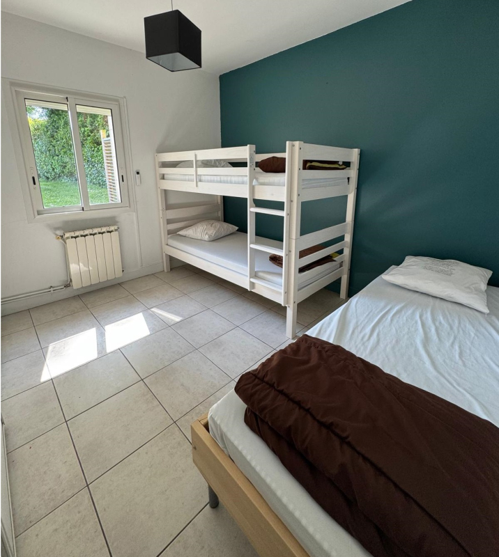 - 1 slaapkamer met 1 tweepersoonsbed (160cm) en 1 eenpersoonsbed
