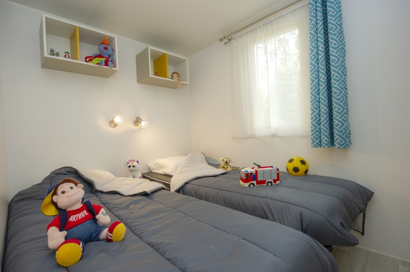 - 2 slaapkamers met 2 eenpersoonsbedden of stapelbedden