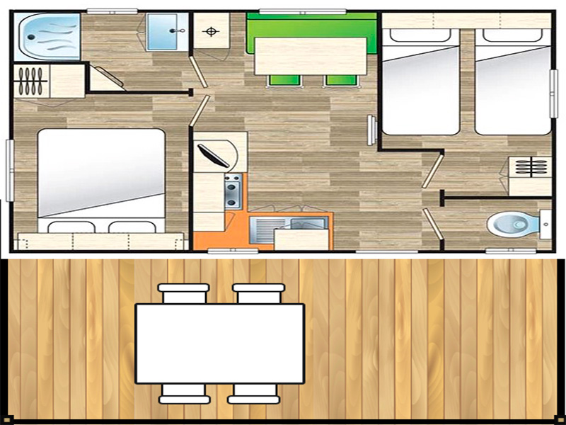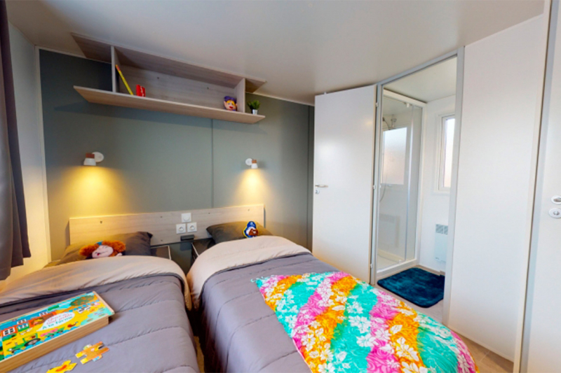 - 1 slaapkamer : 3 eenpersoonsbedden waarvan 1 stapelbed (70 cm)
