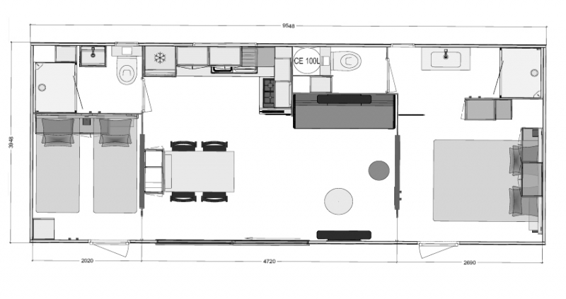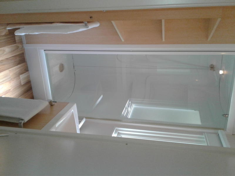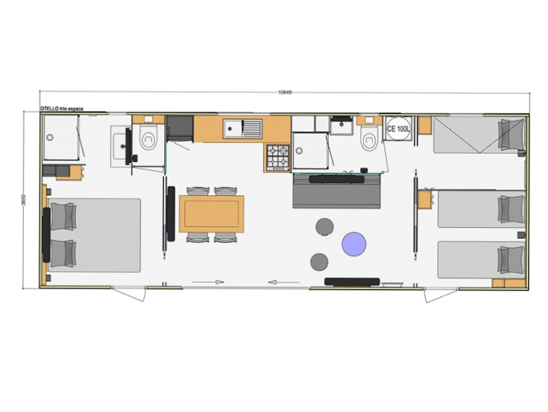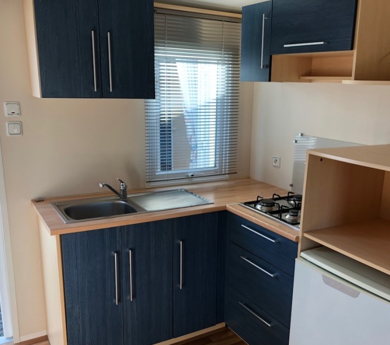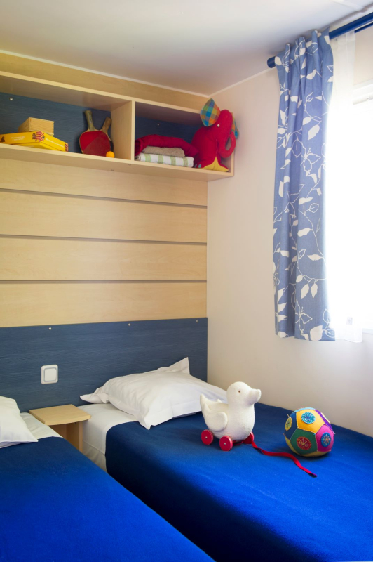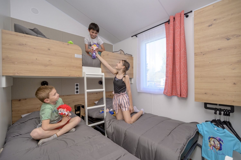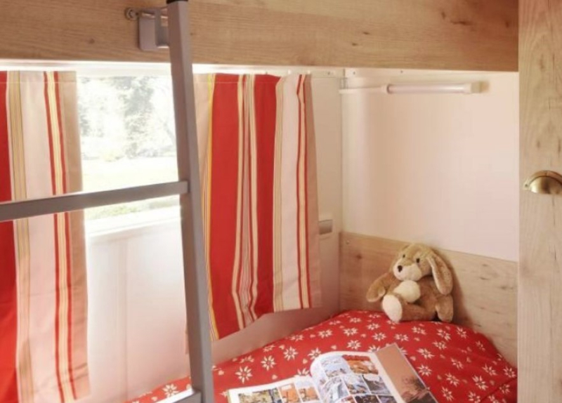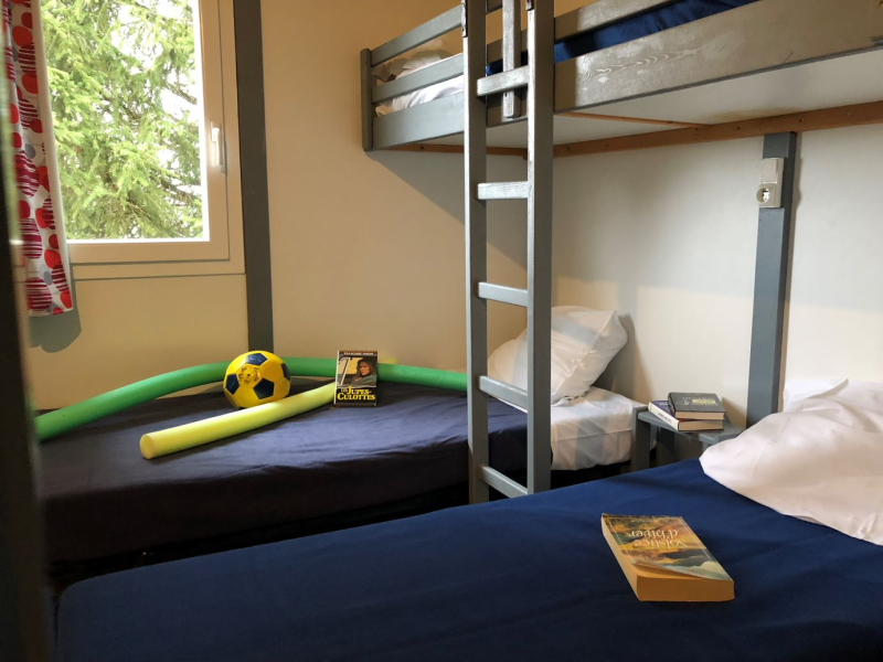 - 1 slaapkamer: 3 eenpersoonsbedden van 80 cm (één losstaand, één onderschuifbed en één hoogslaper).