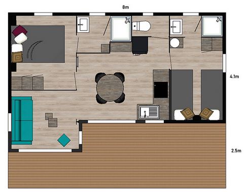 - 1 slaapkamer met 2 eenpersoonsbedden (80x190cm) met privé badkamer en toilet