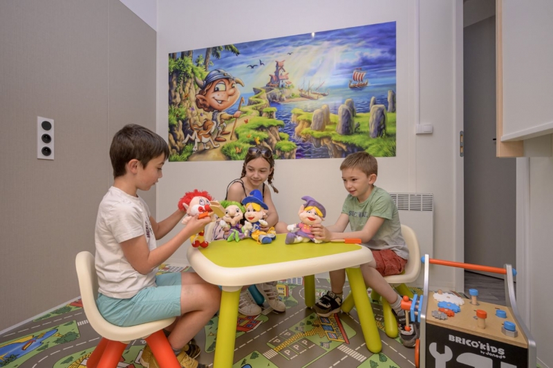 • Een kleurrijke speelkamer met spelletjes (uiteraard) en tv!