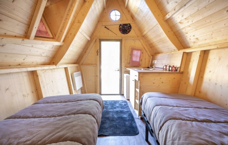 - 2 slaapkamers: 1 met twee eenpersoonsbedden, 1 met een stapelbed