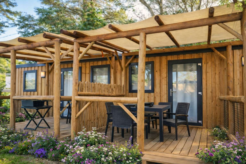 De Tribu Top Presta is speciaal ontworpen voor grote families die veel ruimte nodig hebben! Het is een grote staanplaats van 170m² waar 2 stacaravans op staan die een gemeenschappelijk terras delen.