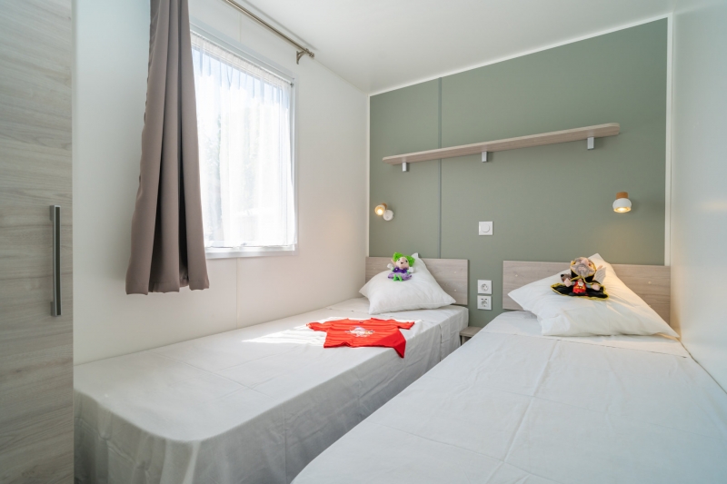 - 2 slaapkamers met 2 eenpersoonsbedden of stapelbedden