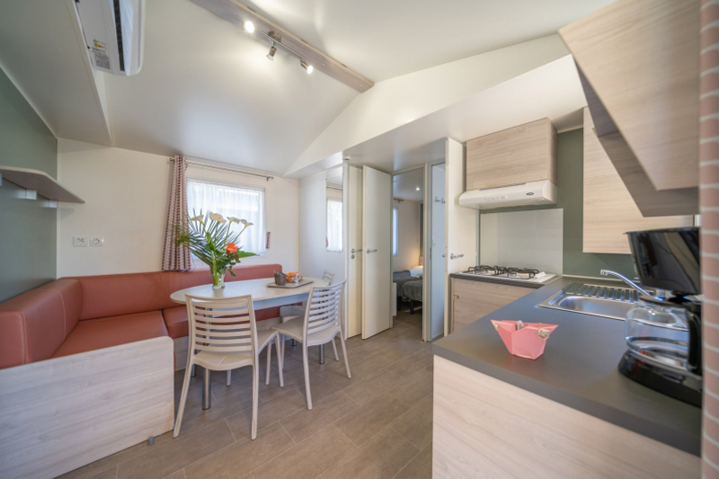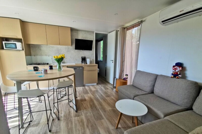 - Woonkamer met slaapbank (2 slaapplaatsen voor kinderen onder de 12)