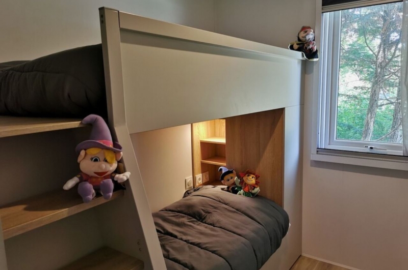 Sommigen hebben een slaapkamer met stapelbed in plaats van eenpersoonsbedden.