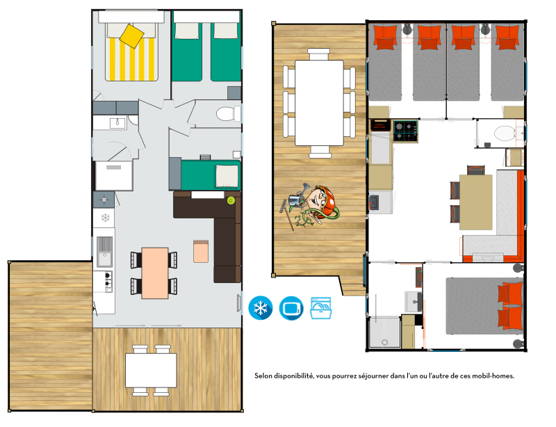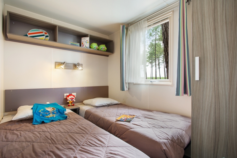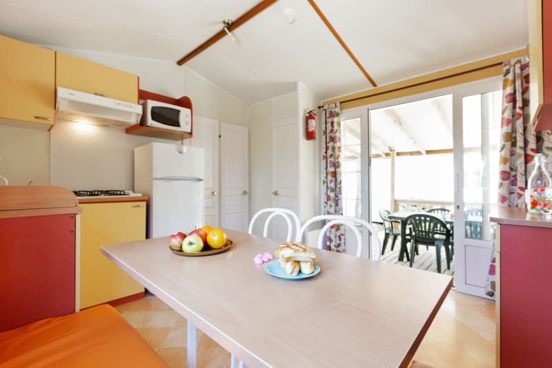 - 1 slaapkamer met 3 slaapplekken (1 verhoogd eenpersoonsbed en een uitschuifbed met twee slaapplaatsen)