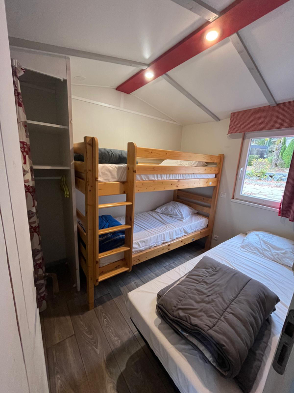 - 1 slaapkamer met 3 slaapplekken (1 verhoogd eenpersoonsbed en een uitschuifbed met twee slaapplaatsen)