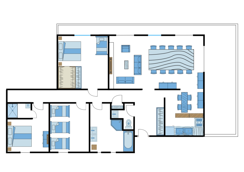 - 1 slaapkamer met 4 eenpersoonsbedden