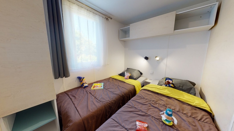 - 2 slaapkamers met 2 enkele bedden of 1 slaapkamer met 2 enkele bedden en 1 slaapkamer met 2 stapelbedden