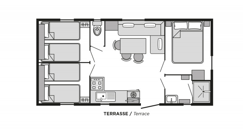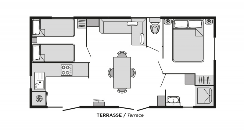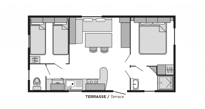 - 2 slaapkamers met 2 eenpersoonsbedden