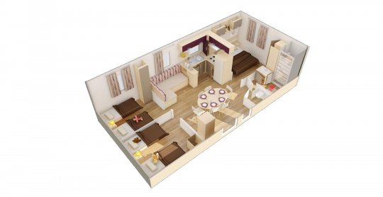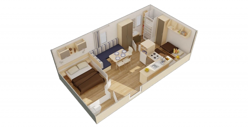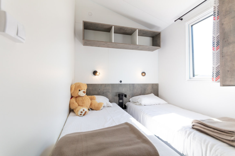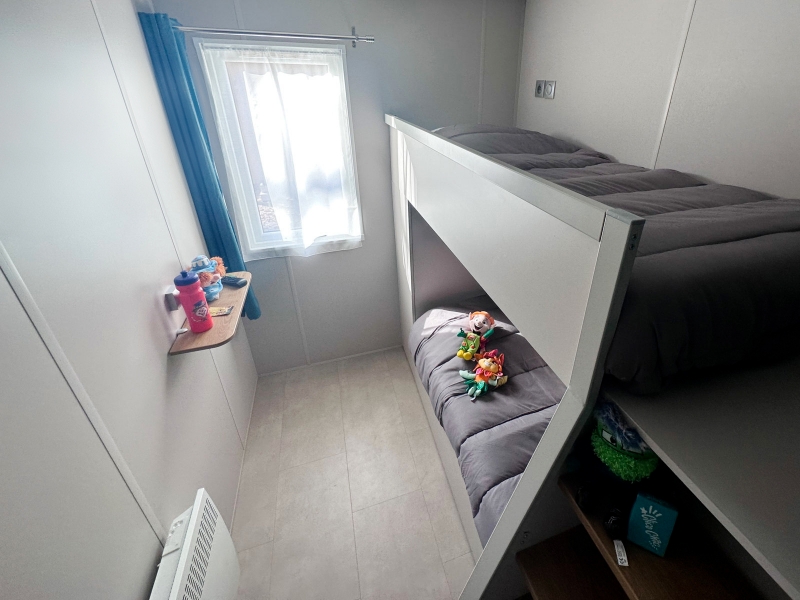 - 1 slaapkamer met 1 eenpersoonsbed en 1 stapelbed (2 slaapplaatsen voor kinderen tot 12 jaar)