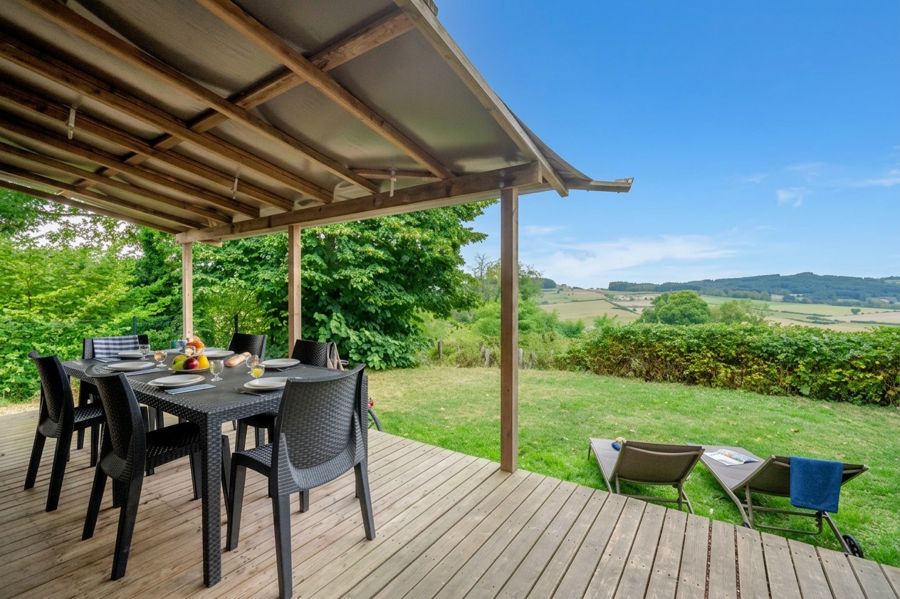 Stacaravan : Clicochic Top Presta 4 personen uitzicht Champs TOP PRESTA