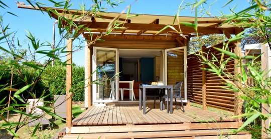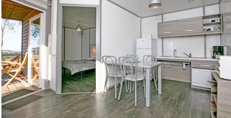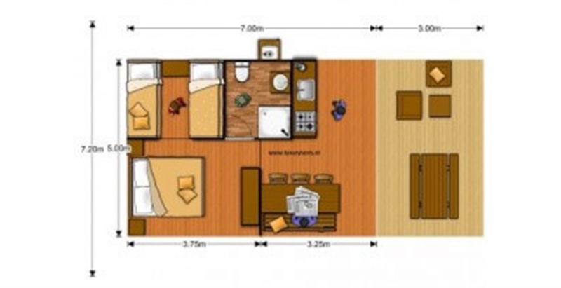 Ingerichte bungalowtent : LODGE WOODY 6 PERS