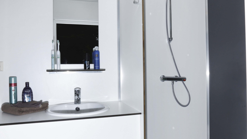 Het is een nieuwe, grote stacaravan voorzien van 2 badkamers en een eigen toilet! Dit concept biedt comfort, rust en leefruimte!